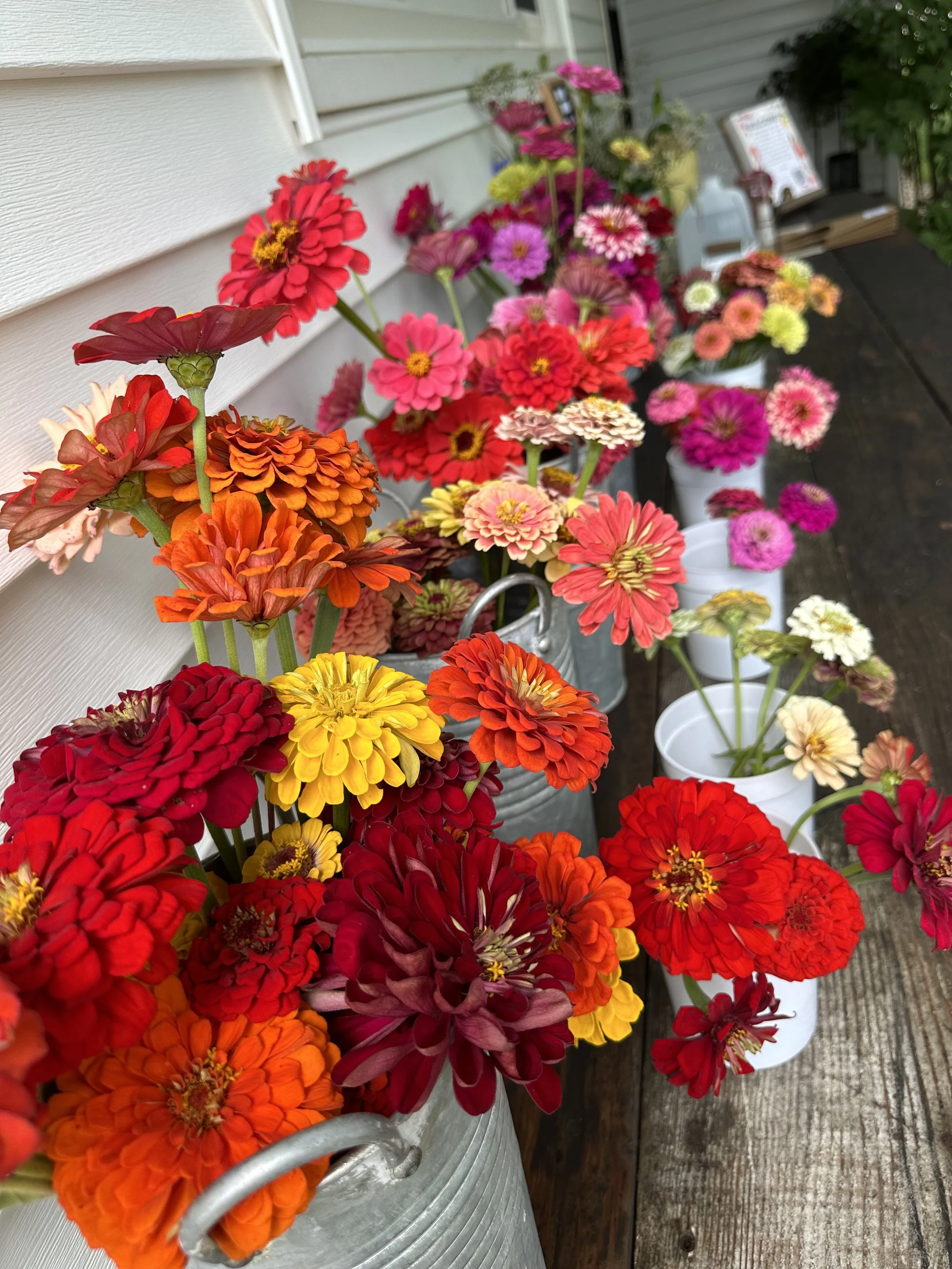 Each season we continue to add more flowers to our roadside stand! Annually we grow zinnias as a staple of our Build You Own Bouquet table!. In addition to zinnias, this year we added Peonies and Lavender!